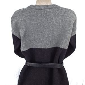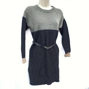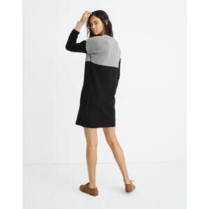Fall layering, done the Madewell way. This 100% merino wool sweater dress takes the ease of an oversized knit and sharpens it into a streamlined silhouette. The colorblock palette—soft gray, tan, and deep charcoal—lands squarely in the quiet luxury space: understated, versatile, and impossibly chic.