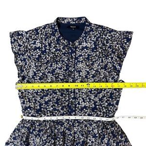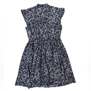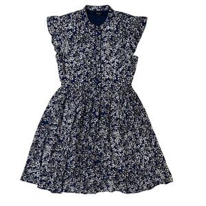 Madewell 100% Silk Blue Newsprint Floral Ruffle Cap Sleeve Silk Dress Womens 10