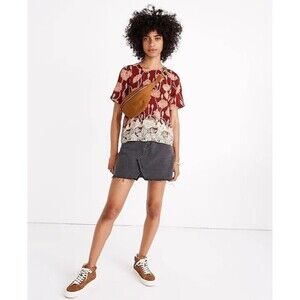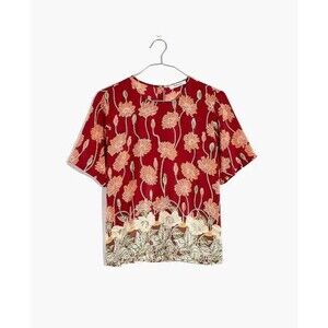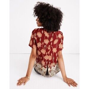 Madewell 100% Silk Button-Back Pocket Top in Tall Sunflowers XXS Hippie Boho