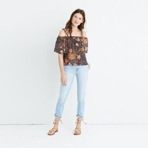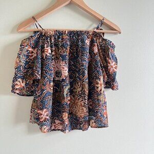 Madewell 100% Silk Cold-Shoulder Top in Sea Floral Womens Size XS