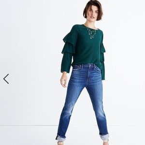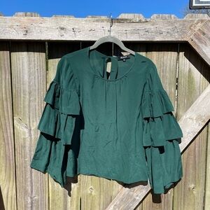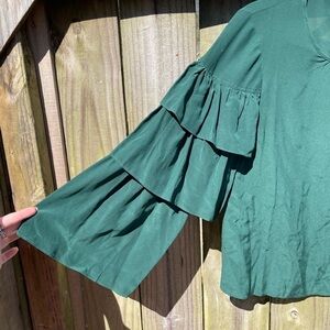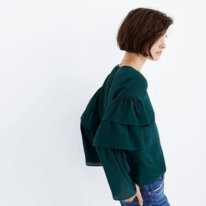Madewell 100% Silk Deep Green Ruffle Sleeve Blouse