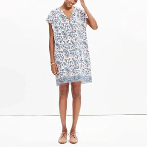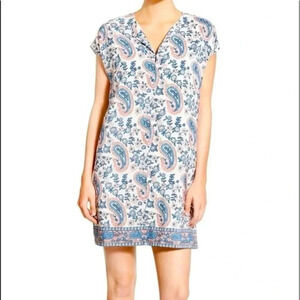 Madewell 100% Silk Floral Paisley Print Popover Dress Pink Blue Size XS