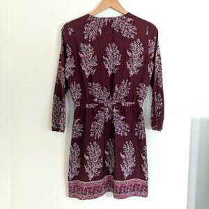 Madewell | 100% Silk Lassi Polka Dot Floral Dress Burgundy / Long Sleeve Size 2