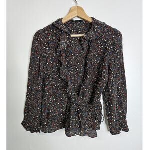 Madewell 100% Silk Ruffle-Hem Wrap Top in Starry Night Women's XS