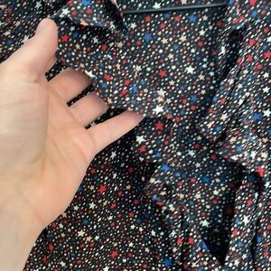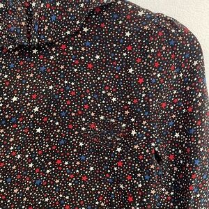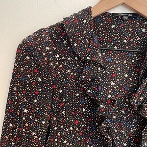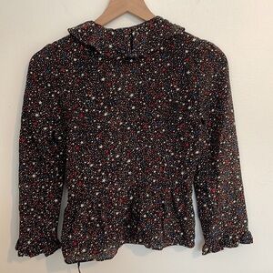 Madewell | 100% Silk Starry Night K0208 Wrap Peplum Ruffle Blouse Blue Red XXS