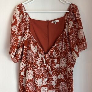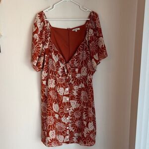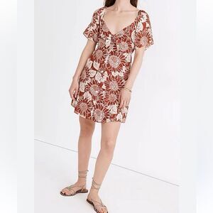 Madewell Silk Tie-Front Mini Dress in Sunflower Season 100% silk Sunflower floral Print Mini Dress in Rust White size 20 EUC!
