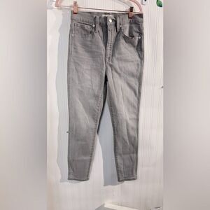 Experience the perfect blend of comfort and style with these Madewell high rise jeans in a sleek gray hue. Designed to flatter your silhouette, these jeans offer a modern fit that pairs effortlessly with any outfit. Ideal for both casual and dressy occasions, they are a versatile addition to your wardrobe.