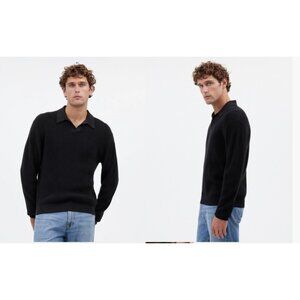 Madewell $118 Johnny Collar Sweater Polo Shirt Merino Wool Black Size S NS443