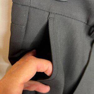 10 3/4" rise, 13 1/4" leg opening, 27" inseam.64% polyester/27% viscose/6% cotton/3% elastane.Dry clean.