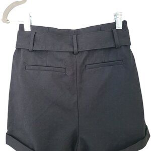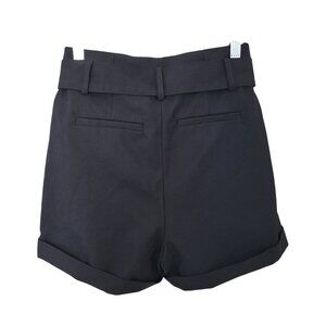 Stylish high-waisted black shorts with a belted waist and rolled hem. Versatile and comfortable, suitable for casual or semi-formal outfits.