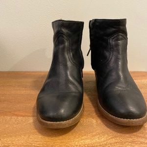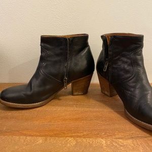 Madewell 1937 Zip Code booties in black with an Inner zip. This is branded as 1937 on the shoe when Madewell included 1937 in their branding.