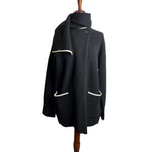 Madewell $198 Merino Wool-Blend Scarf Sweater Jacket Black Size M NT607