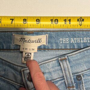 Excellent Condition Madewell 1991 Athletic Straight Leg Light Wash Jeans. Tag reads 31x34, but I had these jeans hemmed at Madewell. Please refer to photos for measurements. Inseam is now about 31in.