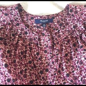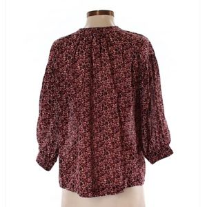 Like new. Delicate and breezy floral fabric that would be adorable tucked into high-waisted bell bottom jeans and paired with wedges. Or, for a work look, pair with skinny crops and flats. Very versatile. Can be worn buttoned at the top for a key hole look, or worn open.
