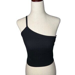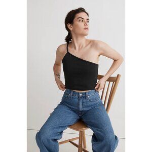 Madewell $35 One Shoulder Crop Tank in Sleekhold Black Size XS NL392