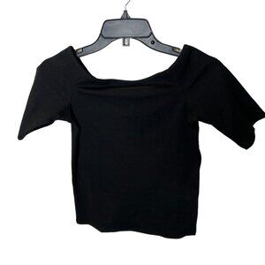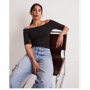 Madewell $45 Off Shoulder Tee in Sleekhold Size XS Black NN256