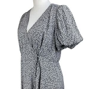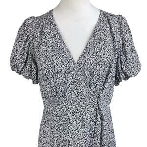 Madewell 6 Challis Button Wrap Mini Black Puff Short Sleeve Floral A-Line Dress