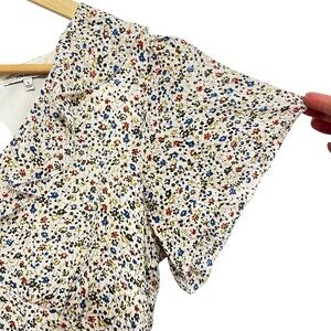 Madewell 6 White 100% Silk Ruffle V Neck Lined Floral Babydoll Fairy Mini Dress