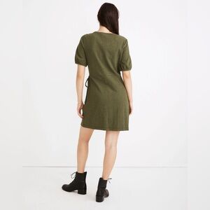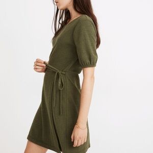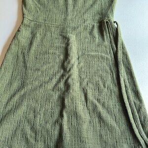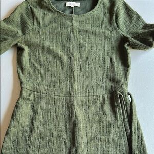 Stylish green textured dress with a tie waist. Perfect for any occasion.