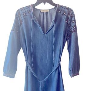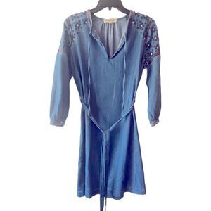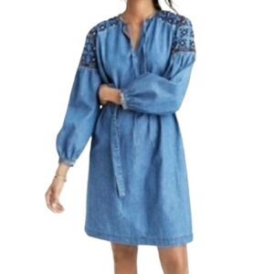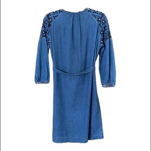 Madewell Belted Bohemian Embellished Denim Dress Size Small S