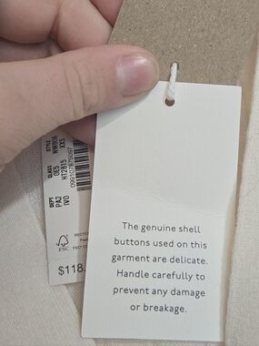 Please note: the buttons on this garment are delicate; please handle with care.