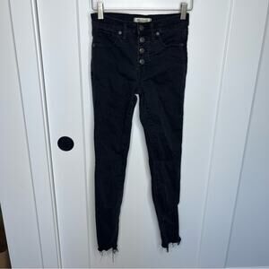 Madewell 9” High Rise Exposed Button Fly Skinny Black Raw Hem Jeans Size 24