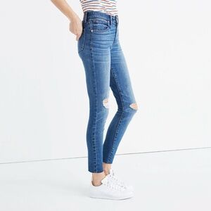 Madewell 9” High Rise Skinny Crop Distressed Jeans in Bruce Wash, Size 26.