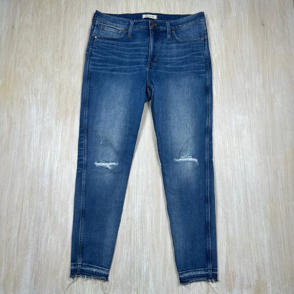 Madewell 9” High Rise Skinny Distressed Blue Denim Raw Hem Casual Jeans 32