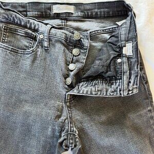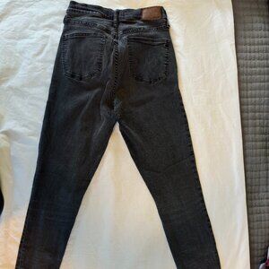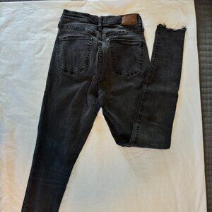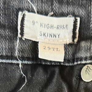 Black Madewell high rise skinny jean. Size 29T. Raw Hem. Jeans do have small stain on front of right thigh, as shown in pictures.