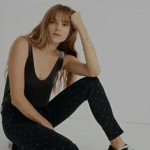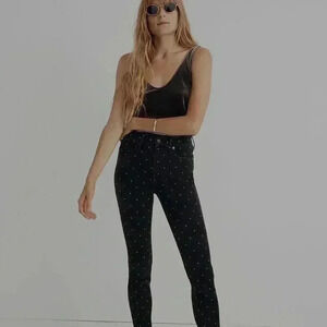 Lean and legs-for-days sexy, these perfectly faded black jeans are embroidered with metallic dots for some low-key shine. The 9" rise has a supersleek ...