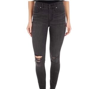 Madewell 9” High Rise Skinny Jeans Black Distressed 5 working Pockets Size 24