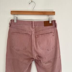 Details: Madewell 9” High Riser Skinny Skinny Crop Jeans - Size: 26 - Color: Pink - G1592 - The 9" rise gives these jeans a supersleek effect, thanks to a tricky new detail—Magic Pockets in front that offer an extra layer of holds-you-in sorcery for the slimmest, smoothest look yet (plus, a touch of added stretch ensures you're still totally comfortable).  Premium 98% cotton/2% elastane denim from the Orta mill. Garment-dyed for rich, dimensional color. Dark metal hardware, tonal stitching. Sit above hip, fitted through hip and thigh, with a skinny leg. Front rise: 9"; inseam: 26 1/2"