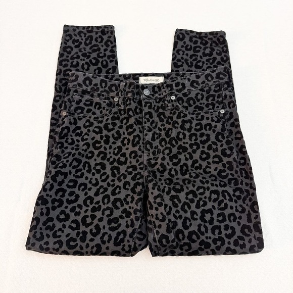 Madewell 9" High-Rise Black Leopard Printed Denim Pants Size 27