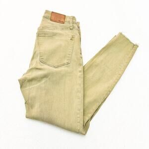 Madewell 9" High-Rise Skinny Green Khaki Denim Jeans Raw Hem Size 28
