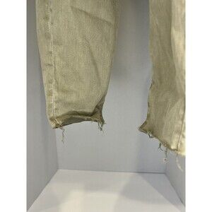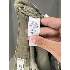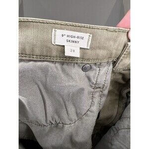 Upgrade your wardrobe with these trendy Madewell 9" high-rise skinny jeans. These garment-dyed edition jeans come in an army green color and feature a solid pattern. The raw hem and button accents add to the overall aesthetic of the jeans, while the zipper provides ease of wear. The size 28 jeans are designed for women and come with a crop feature, making them perfect for any occasion.
