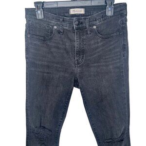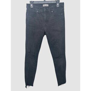 Madewell 9" High-Rise Skinny Jeans With Distressed Hem & Ripped Knees Black 29