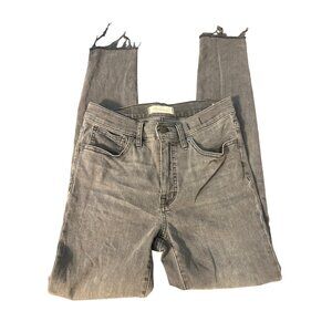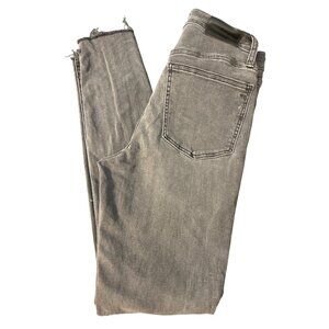 Madewell 9" Mid Rise Skinny Denim Jeans Black Gray Distressed Raw Hem Size 27