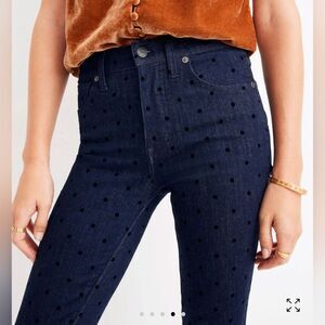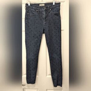 Madewell 9" Mid-Rise Skinny Jeans Flocked Dots dark wash size 29 sexy stretch