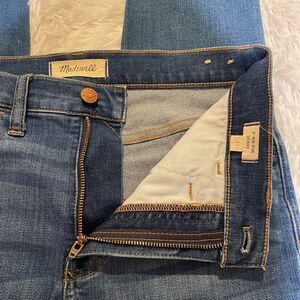SO cute and in excellent like new condition from Madewell! Lean and legs-for-days sexy, these faded indigo jeans are crafted with the very latest in denim technology to boost everything you've got—confidence included. The 9" rise has a supersleek effect, thanks to a tricky detail—Magic Pockets in front that offer an extra layer of holds-you-in sorcery for the slimmest, smoothest look yet. Blue in color. Size 27.