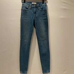 Madewell 9" Mid-Rise Skinny Jeans in Pearson Wash. Light distress on pockets and bottom cuffs.