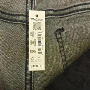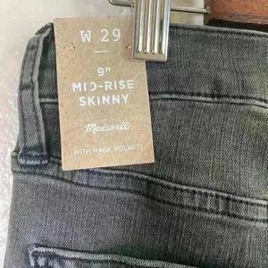 Madewell 9" Mid-Rose Skinny Distressed Frayed Gray Black Jeans Women Size 29 NWT MSRP $128