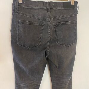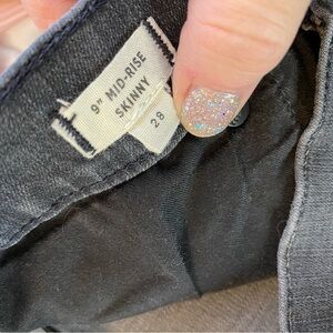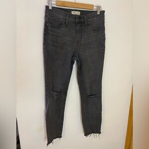 Madewell 9” Midrise jeans. Faded black. Raw hem and distressed knees. Waist 28. Gently pre worn condition.