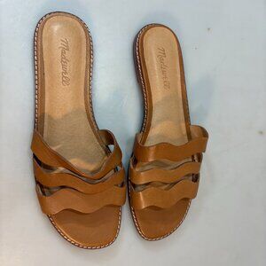 Madewell 9 The Wave Brown Vachetta Leather Slide Flat Sandals