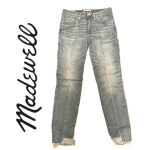 Madewell • 9” high rise skinny denim jeans with frayed hems