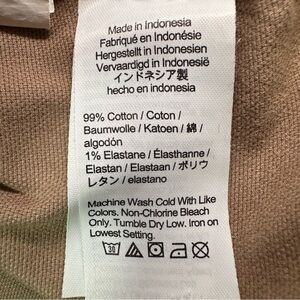 • Features: Zip fly with button closure, front patch pockets, belt loops