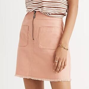 Madewell A Line Zip Blush Pink Frayed Hem Denim Mini Skirt Size 4