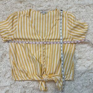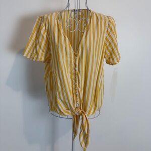 Madewell Agency Tie-Front Button Top Pompano Stripe cotton SZ M white yellow