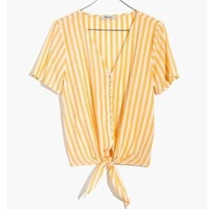 Madewell Agency Tie-Front Button Top in Pompano Stripe, XS
