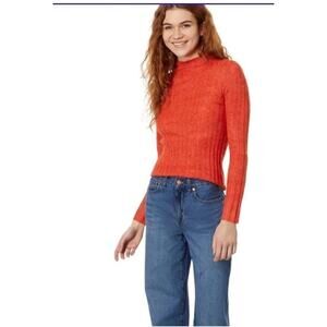 Madewell Alpaca Blend Soft Sweater Large Ribbed Long Sleeve Orange Womens