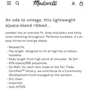 Madewell Alpaca Wool Ribbed Crewneck Sweater XS Black Relaxed Grunge Oversized. NWT.